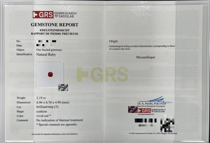 Note: Certification from additional gemological laboratories can be arranged upon customer request, with the associated costs to be borne by the customer.